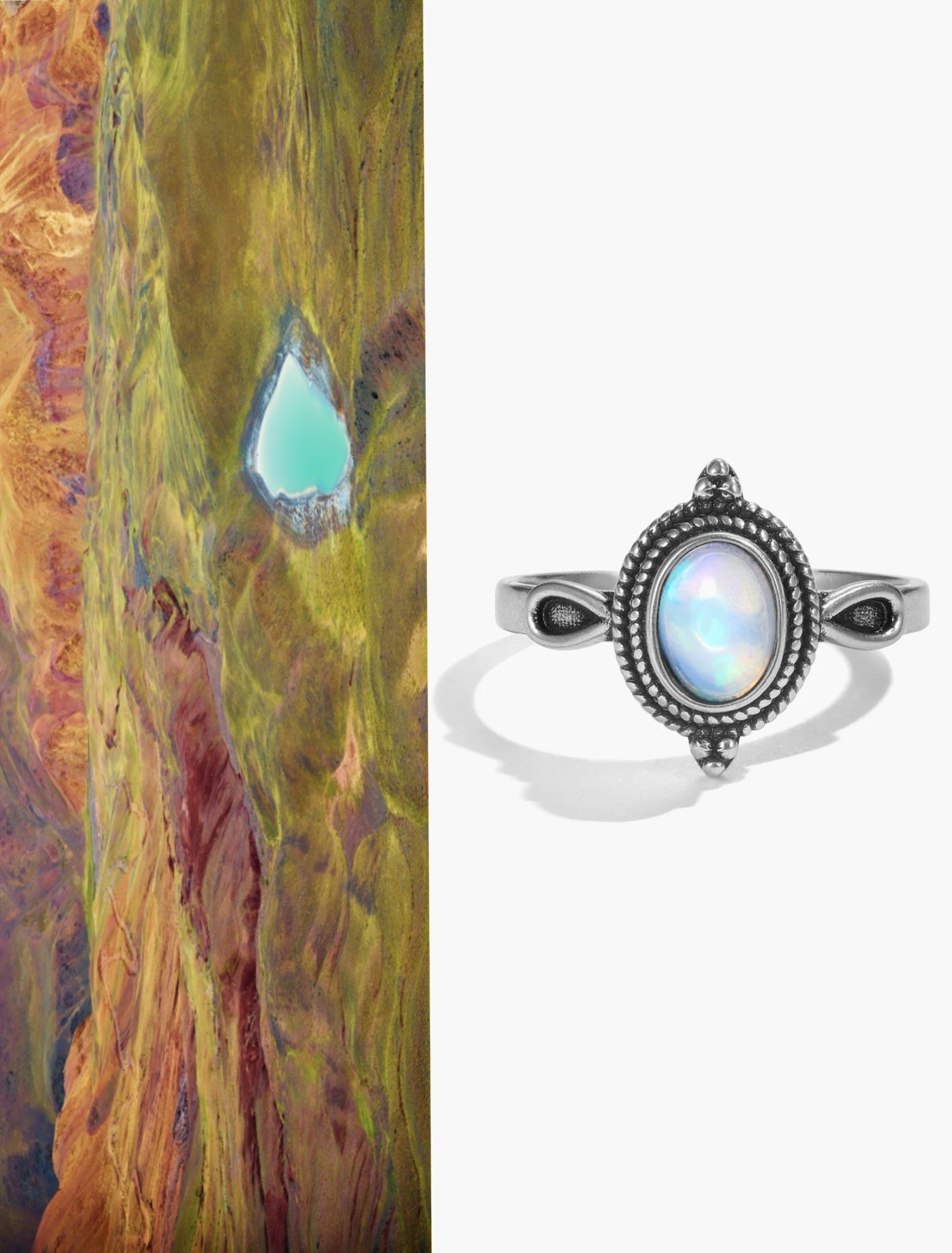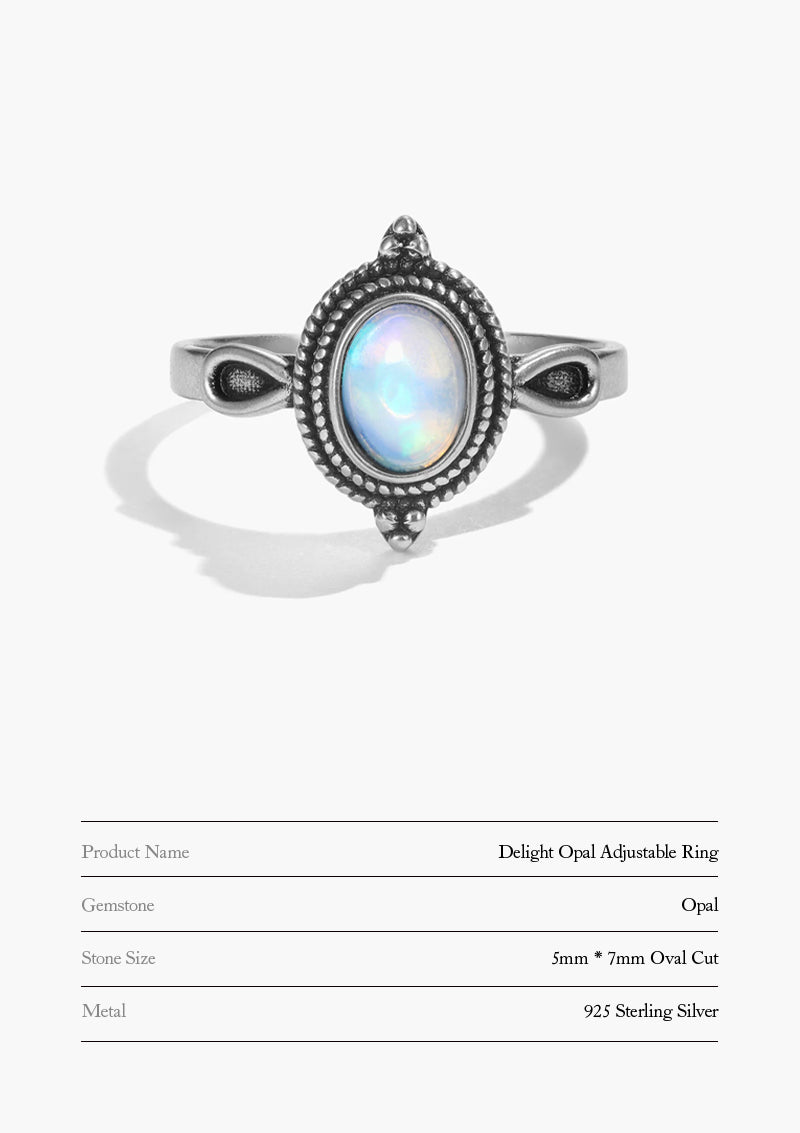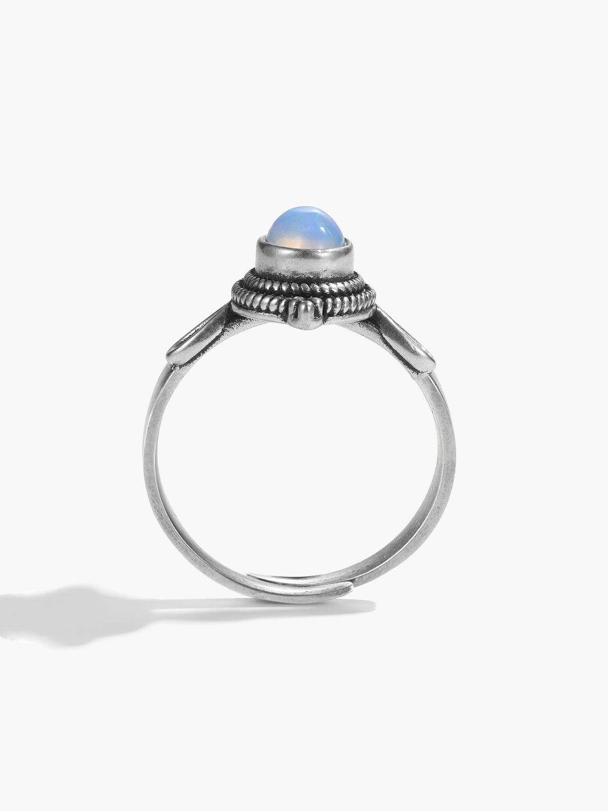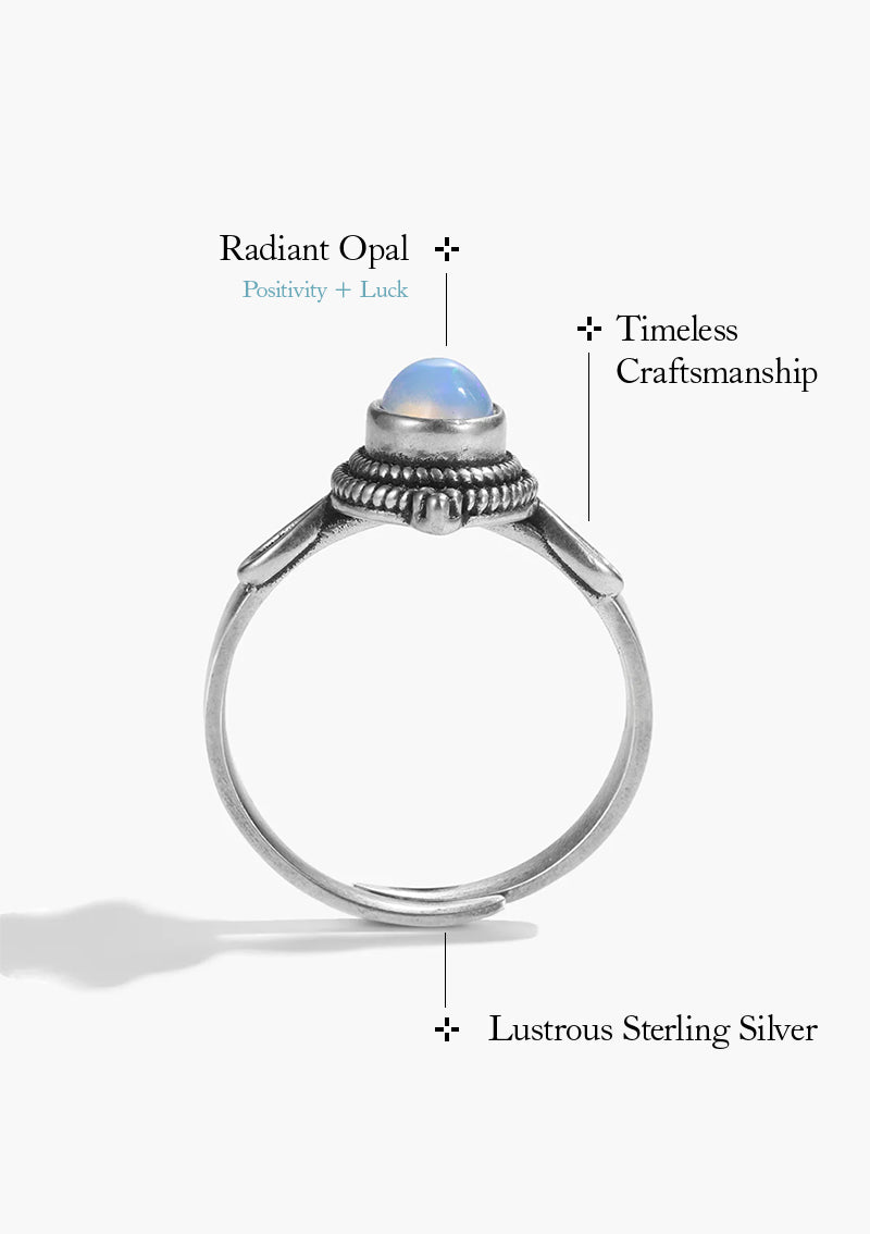 The Delight Opal Adjustable Ring features a polished, oval-shaped Himalayan opal that captures the sky allure and serene energies of its mountainous origin.