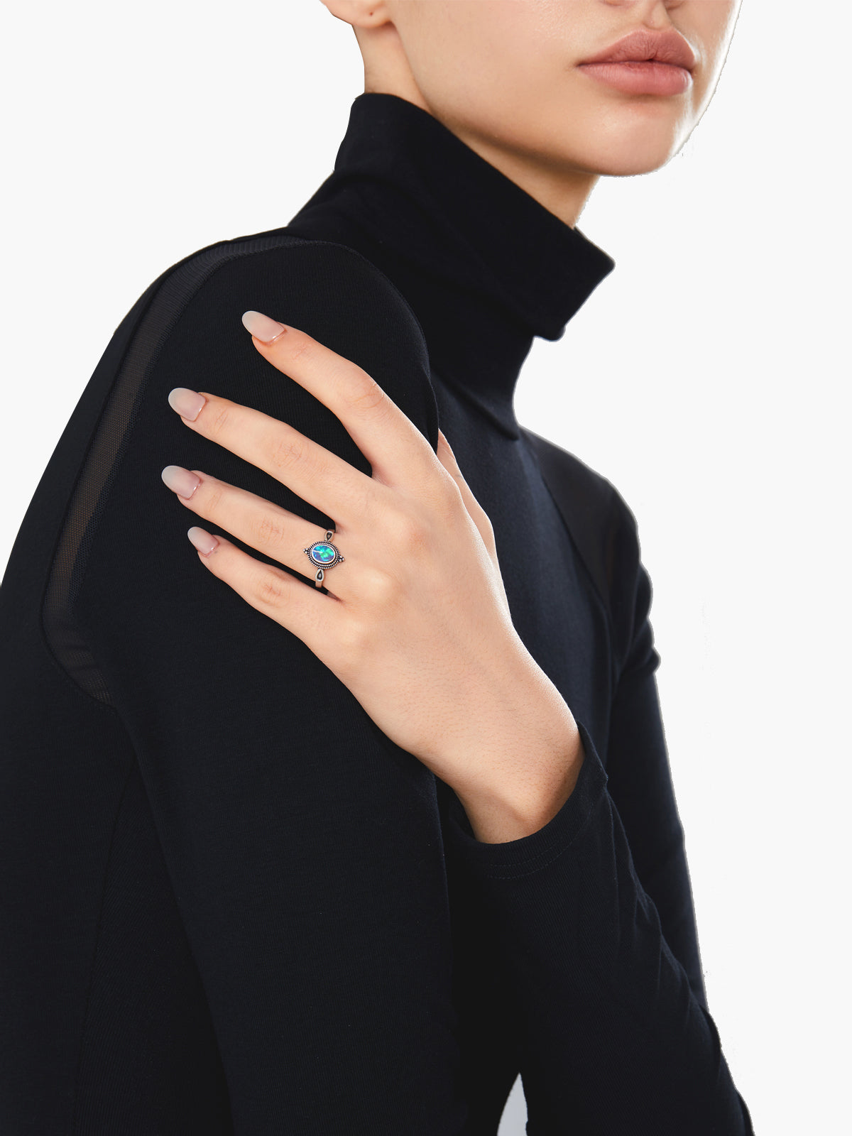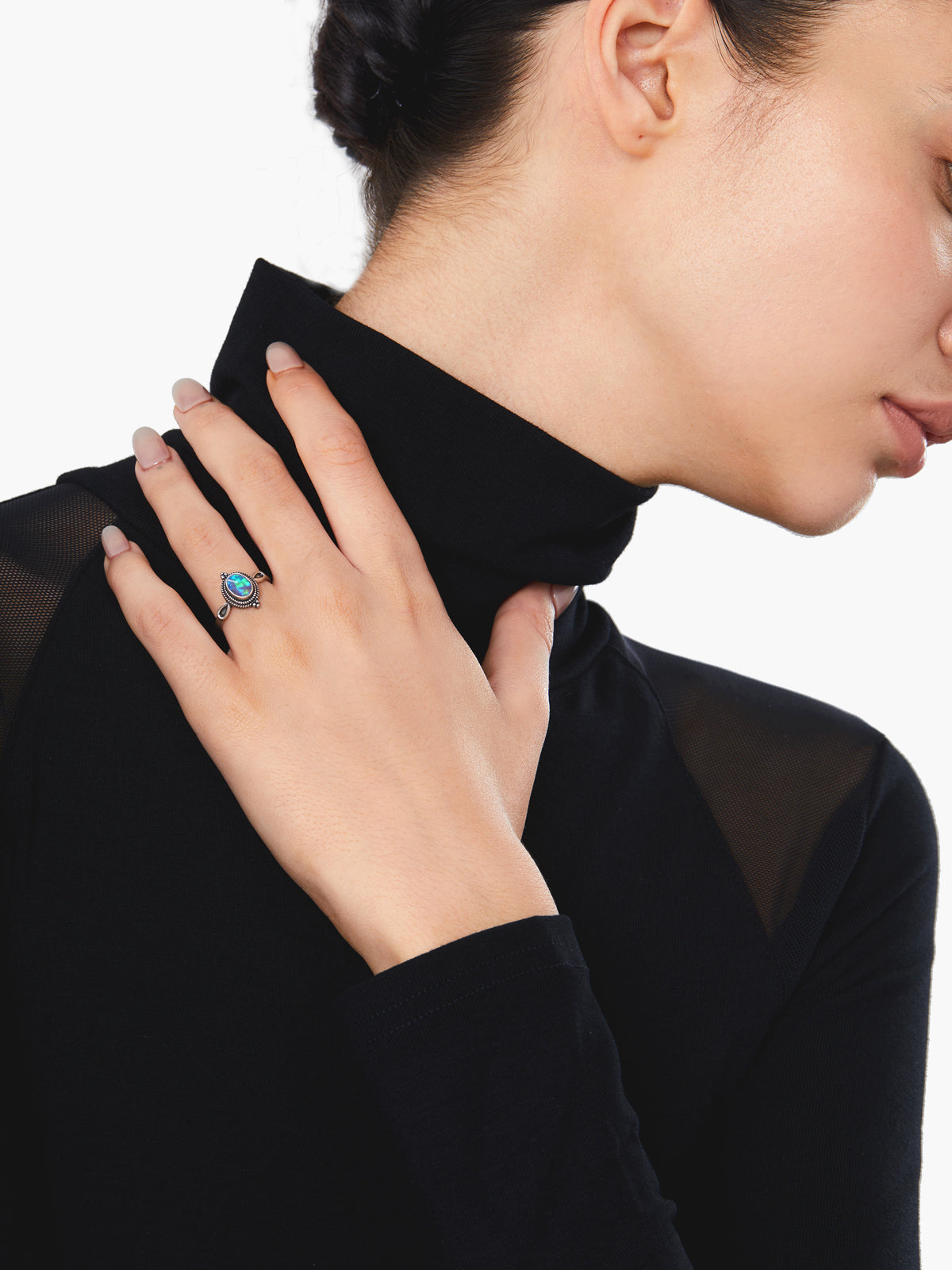 This opal ring shines with so many colors! Every angle reveals a different shade, and I truly feel like it brings positive energy and luck into my life.