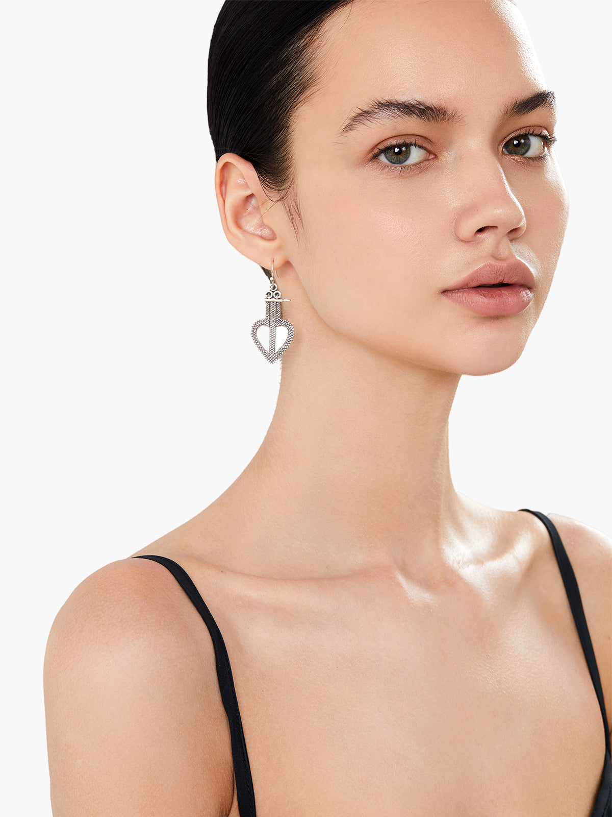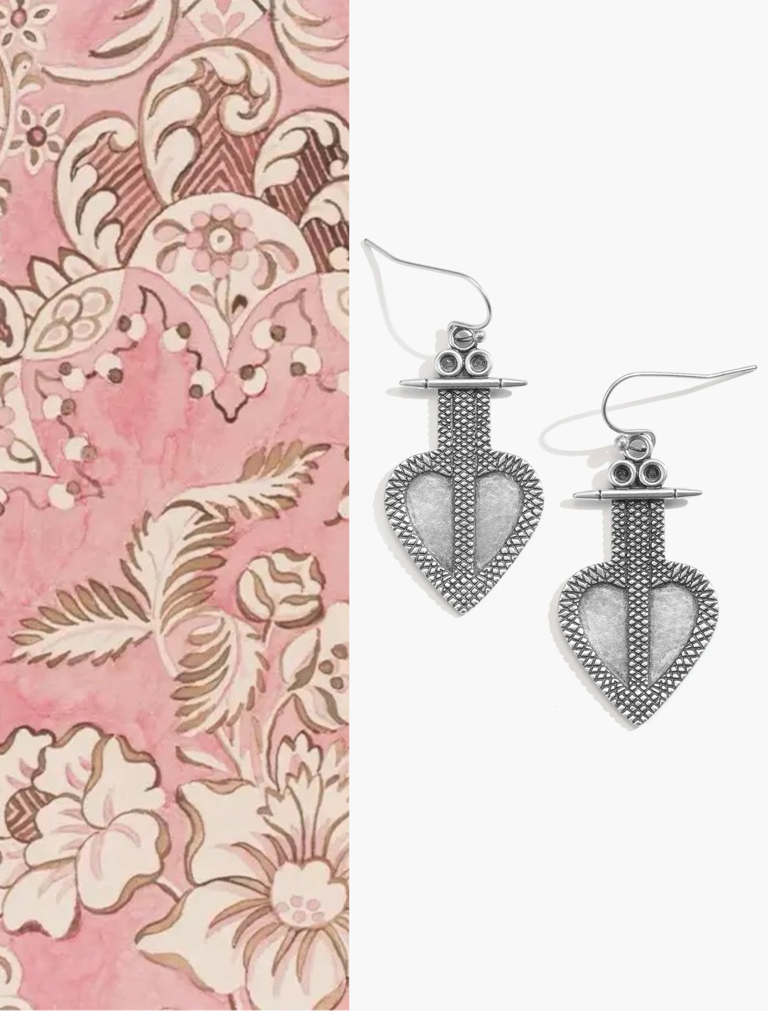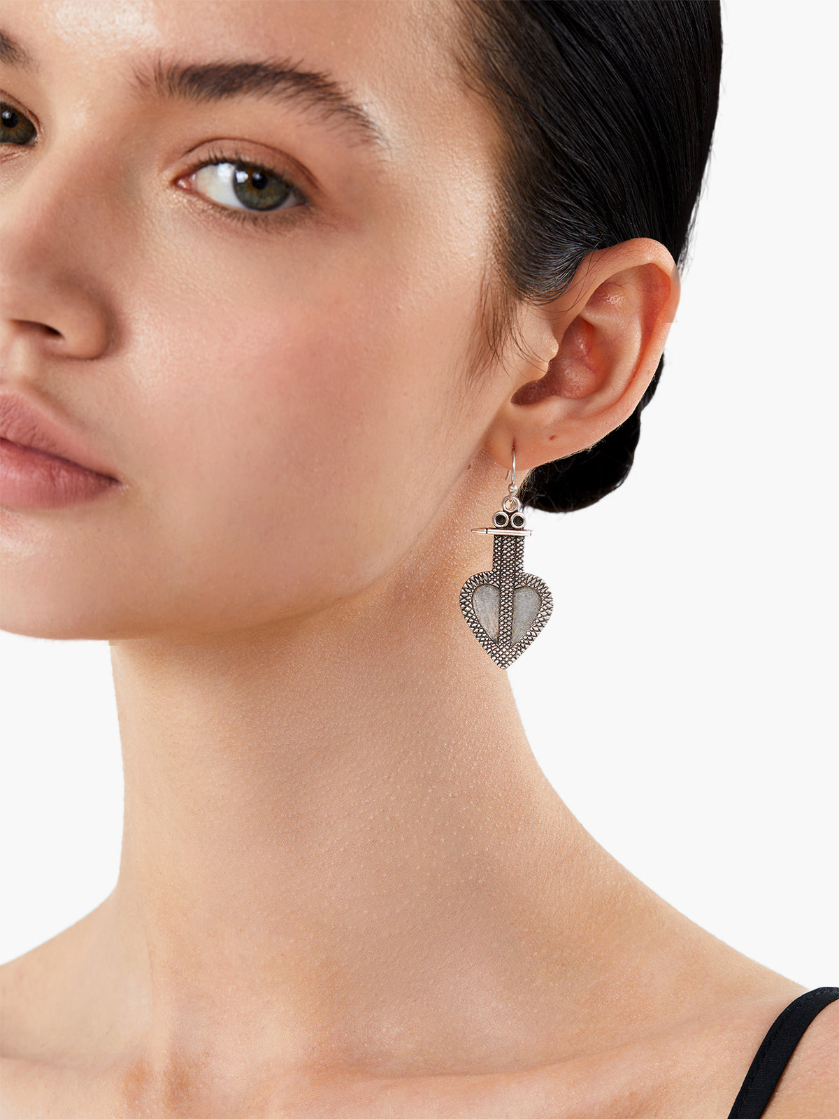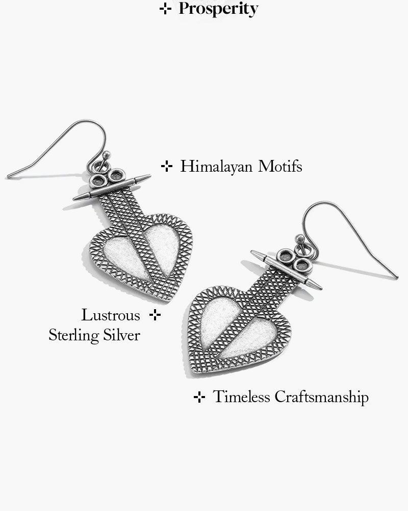 These earrings feature intricately detailed silver heart motifs inspired by traditional Himalayan designs, embodying strength and elegance.