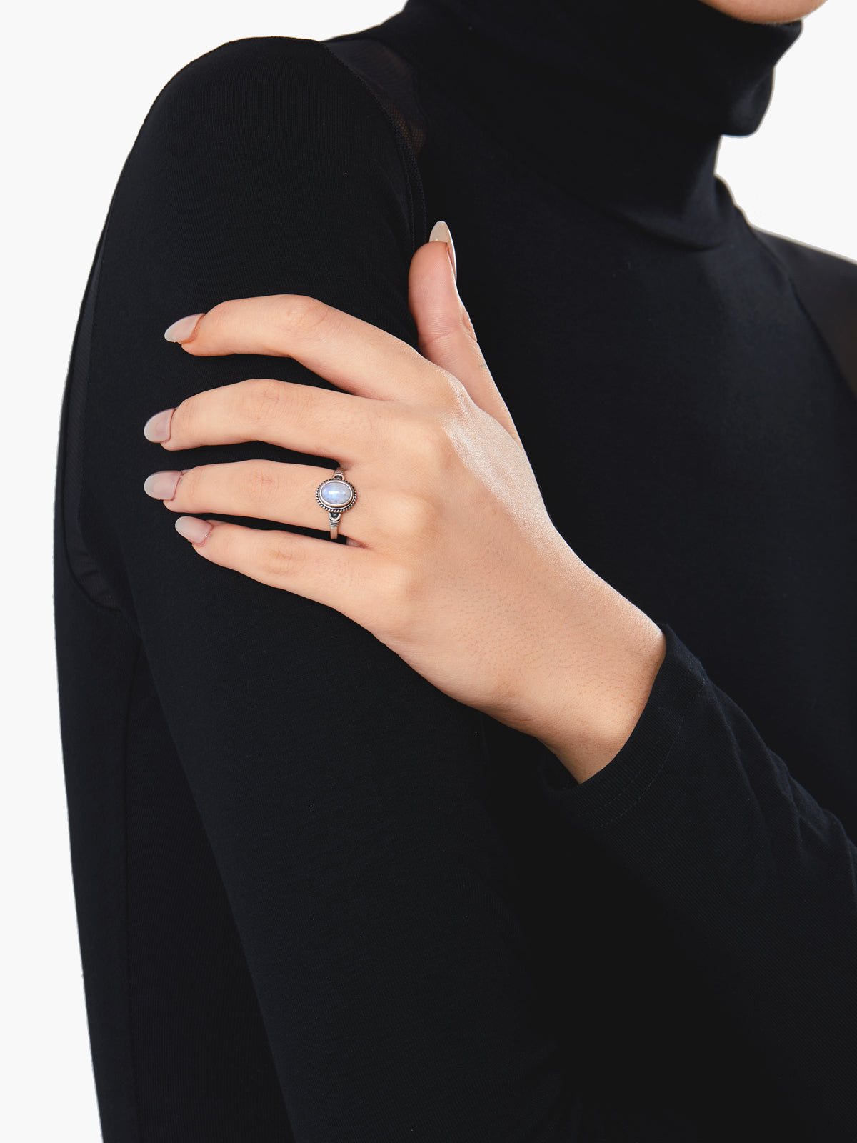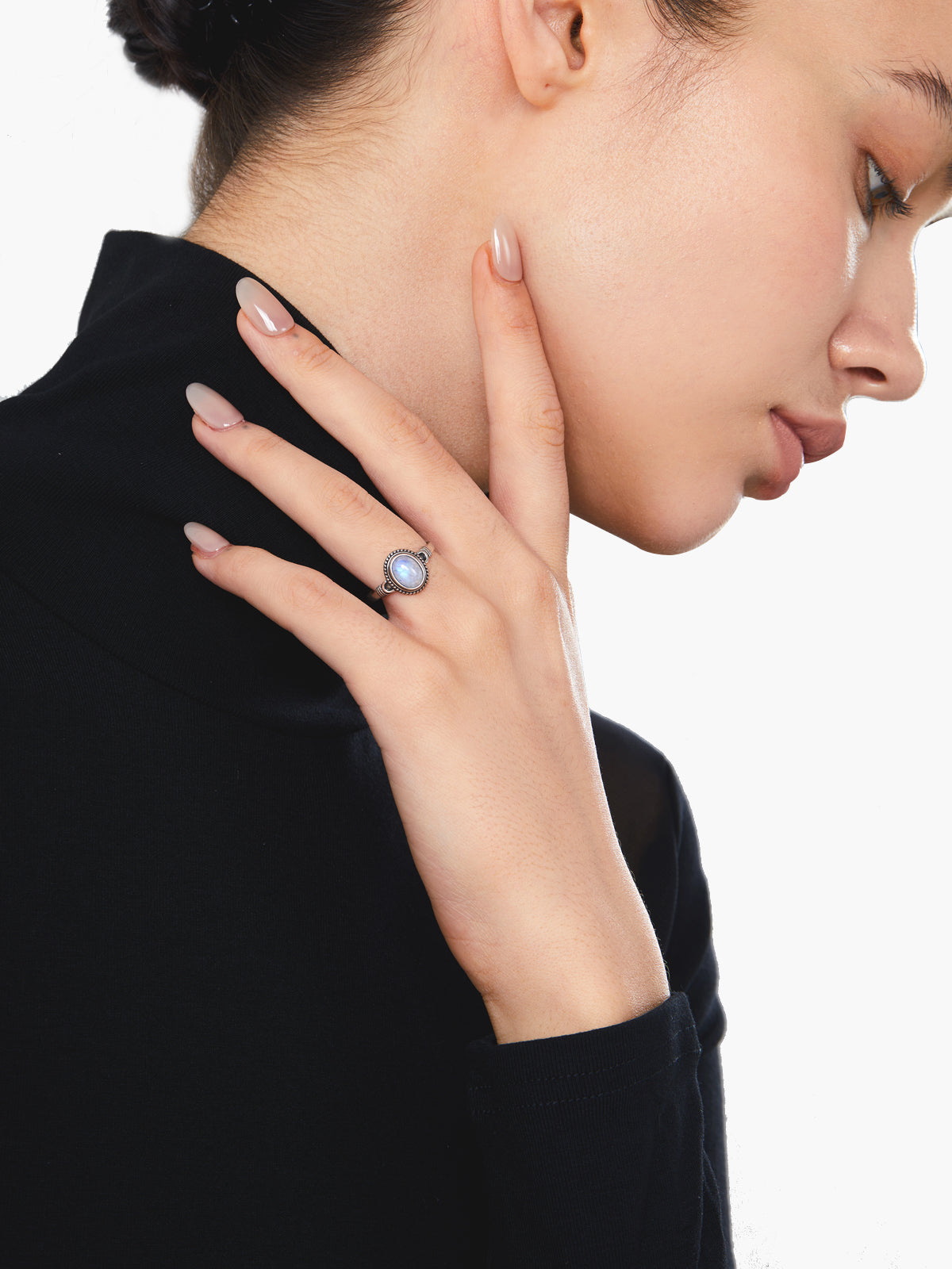 The oval moonstone in this ring has a dreamy, ethereal glow that instantly draws attention. I love how delicate yet powerful it feels, making it a perfect everyday ring with a mystical touch