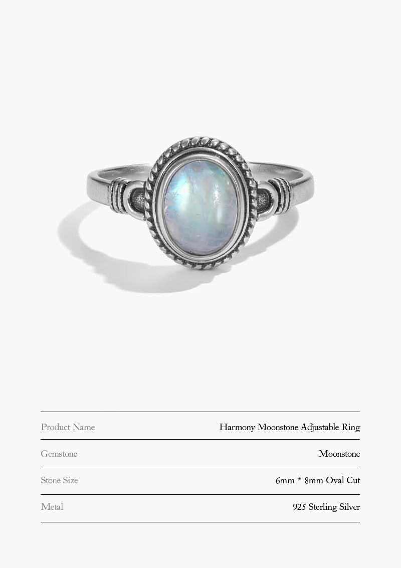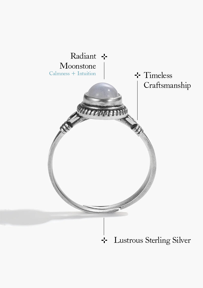 Harmony Moonstone Adjustable Ring is a radiant piece inspired by the mystic beauty of the Himalayan landscape.
