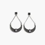 Crafted in antique-finish silver, each earring centers around a luminous opal, capturing the mystique of moonlit Himalayan night.